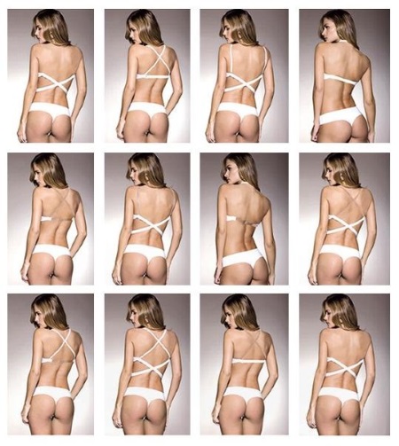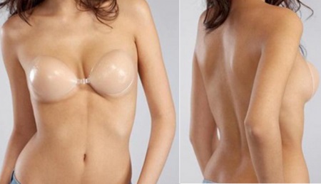 يتيح لك هذا التصميم ارتداء هذا حمالة الصدر تحت ملابس من النوع المفتوح ، والتي ستبدو من خلالها الملابس الداخلية المعتادة. يختبئ حمالة الصدر برفق أسفل الفستان ويعطي الثديين شكلًا مغرًا ، وستناسب حمالة الصدر ذاتية اللصق الفتيات مع صدورين صغيرتين.