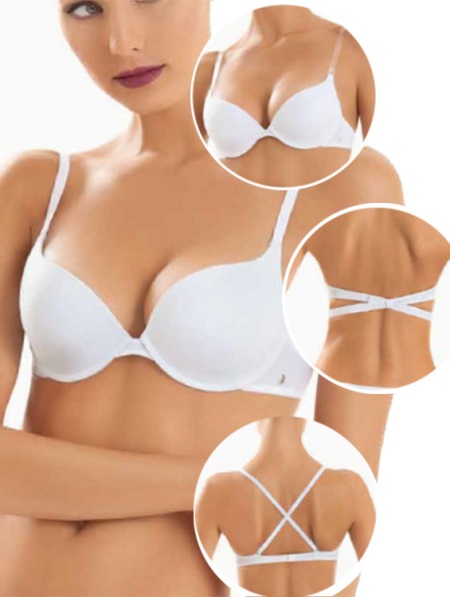 مع هذا النموذج ، يصبح الصدر حجمًا واحدًا على الأقل. يتم تحقيق هذا التأثير من خلال أكواب حمالة مضغوطة مع إدراج رغوة إضافية أو قواعد هلام ، وتقع قطريًا.