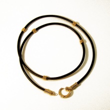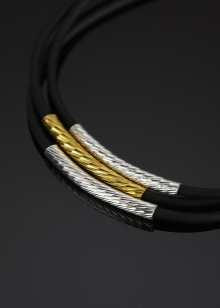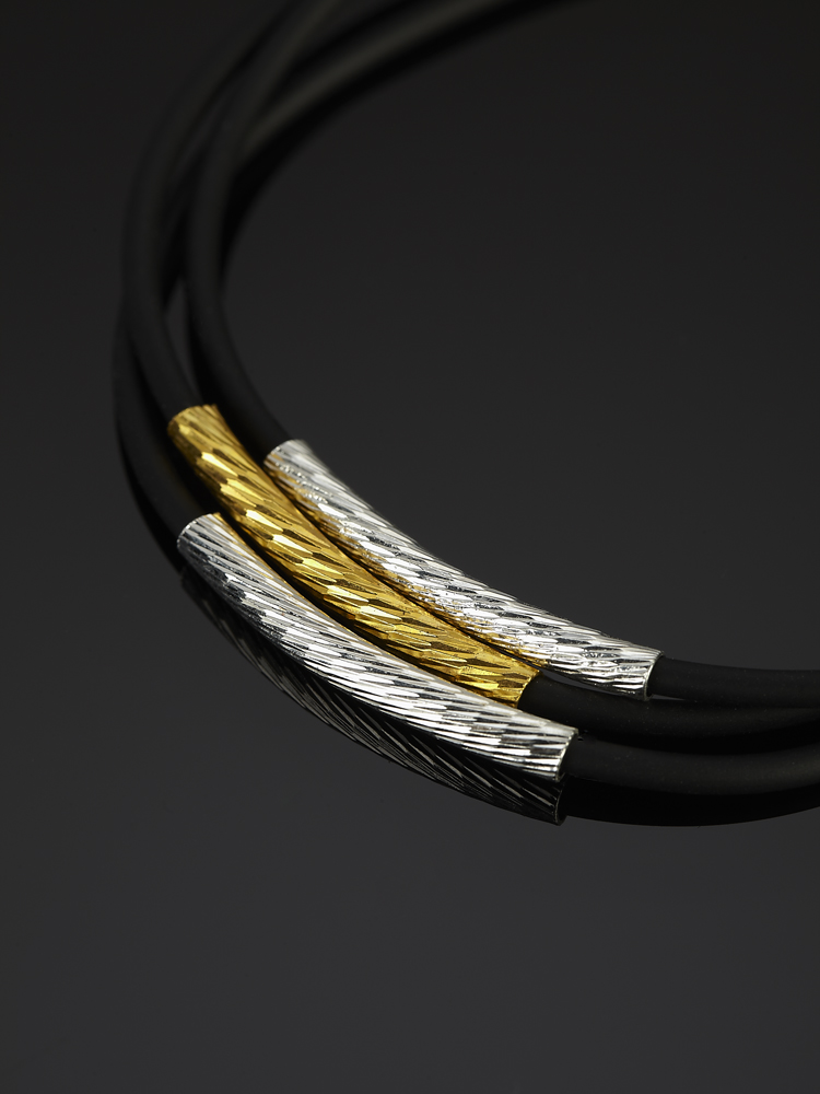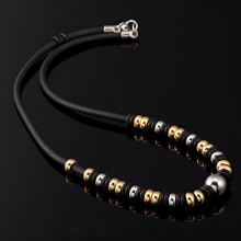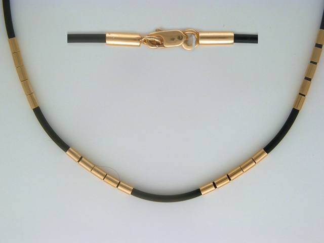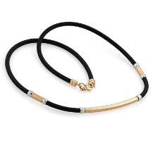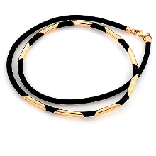 منذ وقت ليس ببعيد ، قدمت صناعة الأزياء مجوهرات غير عادية - سلسلة من المطاط مع إدراج الذهب. تمتزج بقع من الذهب الأحمر والأبيض اللامع في تناسق مع لون غير لامع داكن من المطاط.