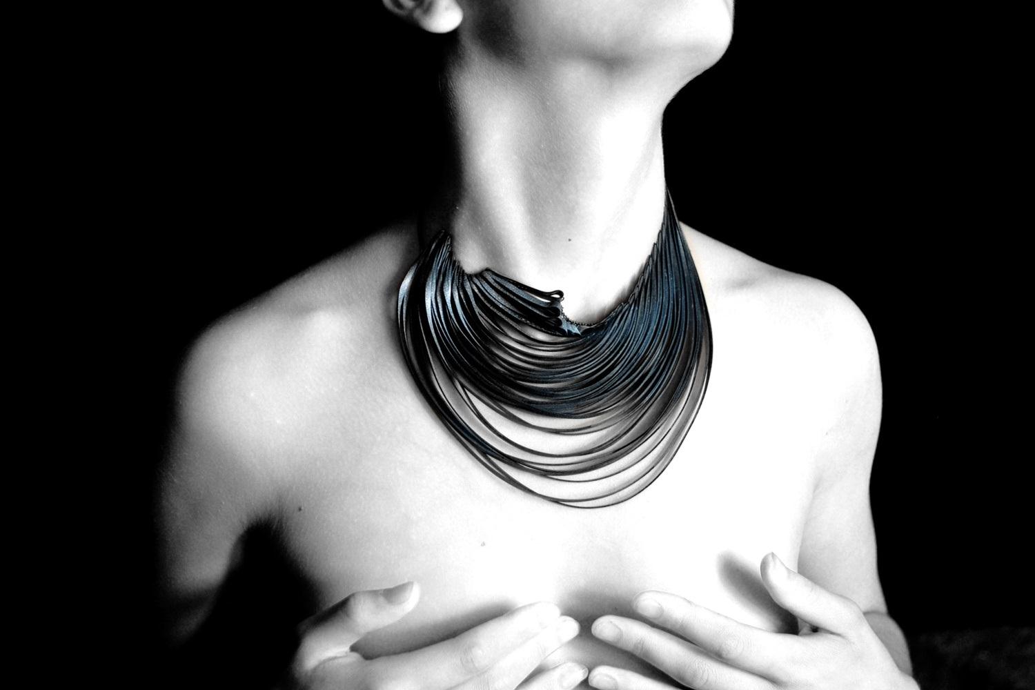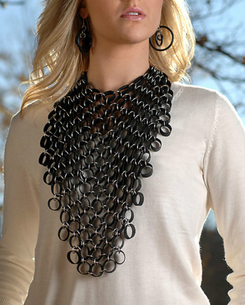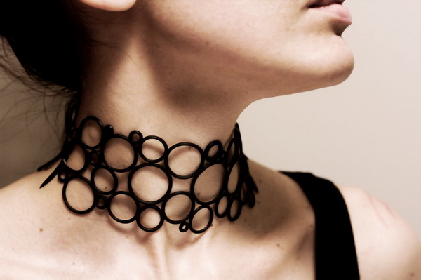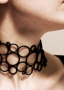 المجوهرات المصنوعة من المطاط مع إدراج الثمينة أو قلادة من الذهب هي واحدة من الاتجاهات الحالية للموسم الجديد. أنها تسمح لك للتأكيد على مزاج وشخصية المرأة. ليس من قبيل الصدفة أن يصمم المصممون الرائدون مجموعات من المجوهرات المطاطية للرقبة واليدين وحتى حقائب اليد النسائية.
