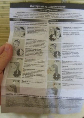 خوارزمية العمل مع الطلاء بسيطة أيضًا. يمكنك تنفيذ هذا الإجراء بشكل مستقل في الحمام أمام المرآة ، ولكن إذا لم تكن لديك خبرة في مثل هذه الأمور ، فمن الأفضل أن تطلب من صديقك المساعدة من أجل علاج السلاسل الخلفية بشكل صحيح ومنع النغمة غير المستوية. يجب إعداد التركيبة قبل الإجراء مباشرة ، حتى لا تضعف الأداة. تمييع الطلاء وفقا للتعليمات الحالية - النتيجة ستعتمد عليه مباشرة. ثم تحتاج إلى تنفيذ الخطوات التالية: