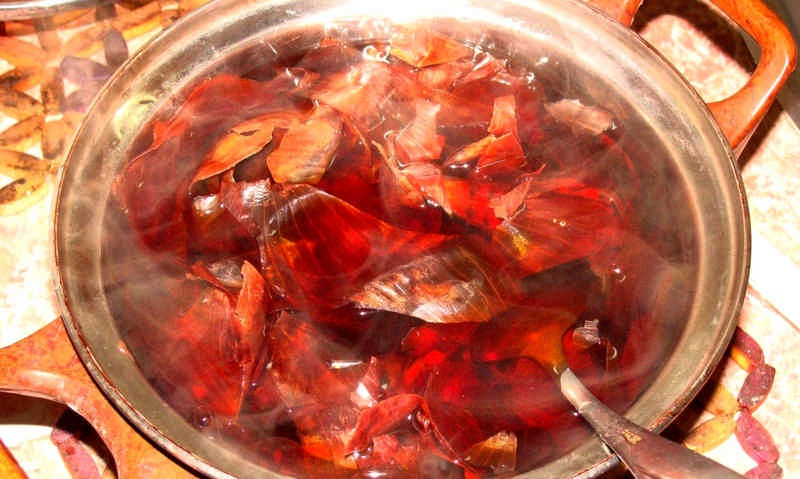- مغلي البصل. من المصابيح تحتاج إلى إزالة قشر ، صب الماء المغلي ثم ينضج لبضع دقائق. ثم يجب غرس المرق ، وبعد ذلك يجب أن يتم تصريفه من خلال الشاش وتطبيقه على الشعر باستخدام اسفنجة. لف رأسك بمنشفة بلاستيكية ، واتركه لمدة نصف ساعة وكرر الإجراء مرة أخرى.يؤثر البصل بشكل إيجابي على حالة الخيوط ويقوي الهيكل ويعزز نمو الشعر.