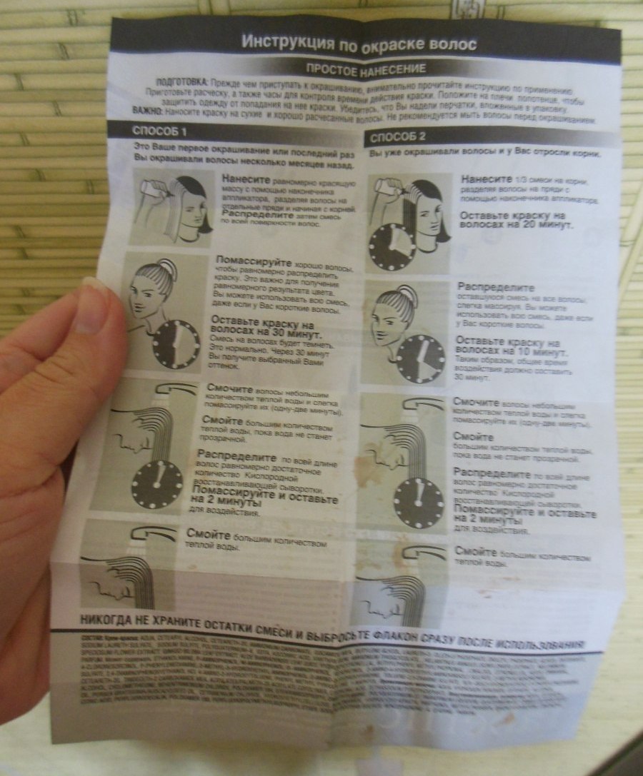 - يعتمد وقت التعرض على الصبغة الطبيعية ، وعادة ما تكون المعلومات المماثلة في التعليمات ؛ من المهم عدم المبالغة في ذلك ، ولكن ليس لتقليل الوقت ، وإلا فإن الإجراء لن يعطي النتيجة المرجوة ؛
