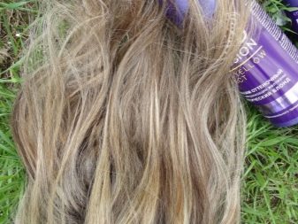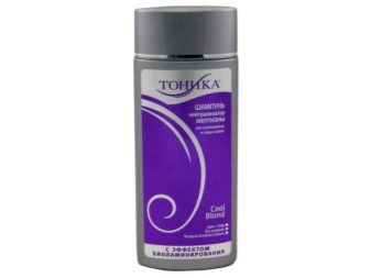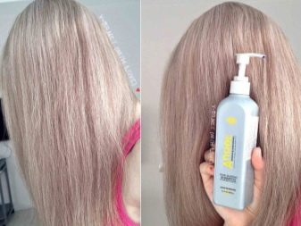 بشكل منفصل ، أود أن أقول عن الشامبو الأرجواني ، والذي يستخدم ضد اصفرار. عند تطبيقها بشكل صحيح ، ستصبح خيوط التبييض الخاصة بك رمادية.