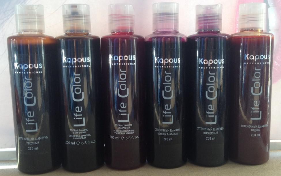- العلامة التجارية المحلية Kapous صدر خط الشامبو "لون الحياة"حيث يوجد 5 نغمات ، مكثفة للغاية - المنتجات مخصصة ليس فقط للمنزل ، ولكن أيضًا للاستخدام المهني ؛