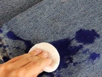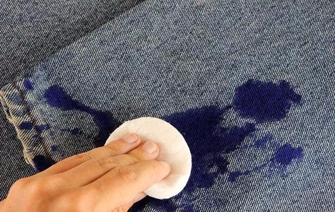 غسل وصمة عار قبالة الجينز هي أيضا ليست مهمة صعبة. المواد كثيفة للغاية ولا تتقلص ، وبالتالي فمن الممكن إزالة الممر من قلم ذي طرف ملس ببضع لمسات مع مذيب وغسل الملابس في غسالة عند درجة حرارة عالية.