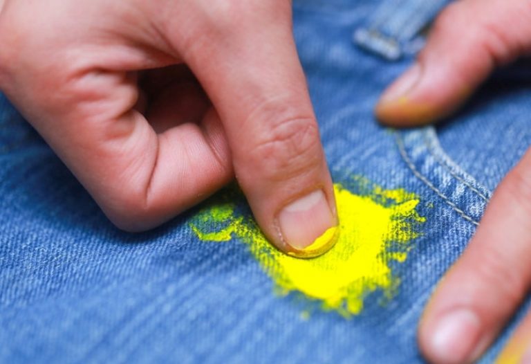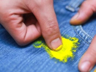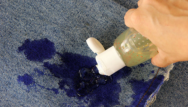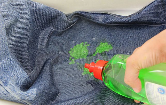 إذا ترك طفلك أو أنت في العملية الإبداعية لوحة كاملة من البقع على الجينز ، فسيتعين عليك العمل بجد لإخراجها. تتميز الدنيم الملون بكثافة عالية ، مما يعني أن الغواش يأكل بعمق في نسيجه ، ويجب أن يتأثر التلوث بوسائل قوية.