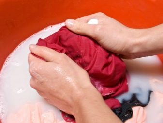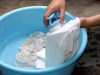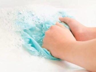- نقع العناصر المتسخة مع الغواش في الماء البارد ، وإلا فإن المجلدات سوف تبدأ في التصلب عند تسخينها ، مما يجعل اللطخة غير قابلة للاختزال عمليًا. يجب مراعاة هذه القاعدة عند الغسيل في آلة كاتبة.