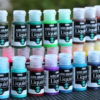 - الغواش الاكريليك. التطورات الحديثة يسمح لإضافة الاكريليك إلى الغواش. إنها تعطي الفرصة للتغطية بأي قواعد ولا يتم غسلها بعد أن يجف الطلاء.