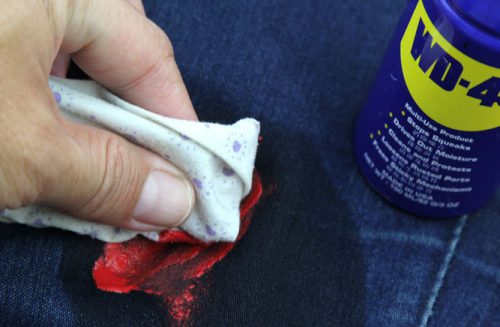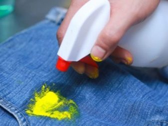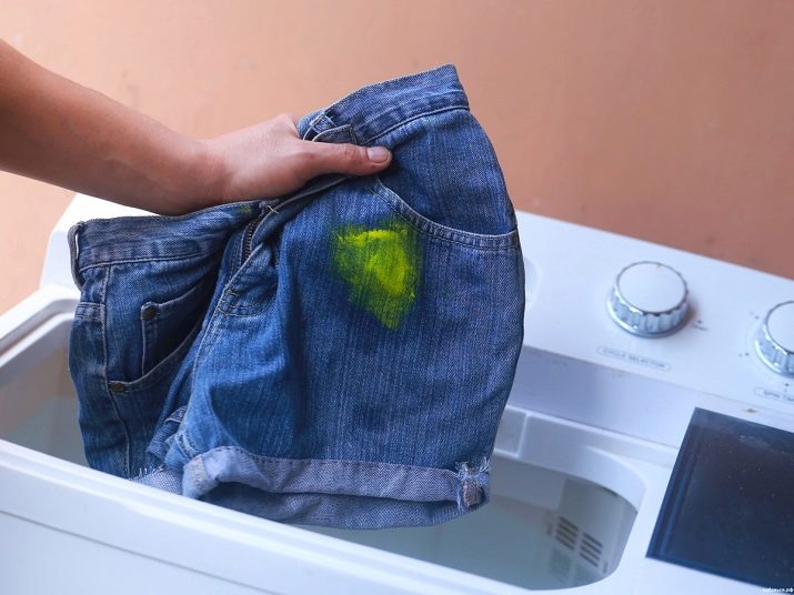 يتكون هذا الطلاء على أساس مائي ، لذلك ، إذا كانت البقعة جديدة ، فيمكن إزالتها باستخدام ماء بسيط مع صابون أو مسحوق مع إضافة "Vanish". إذا ، عندما تغسل بالماء البارد ، لا تتحرك البقعة ، فيمكنك محاولة غسل الملابس بالماء الساخن.