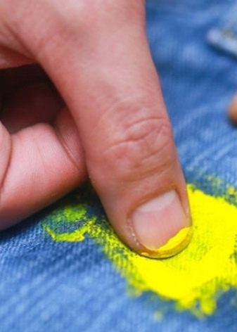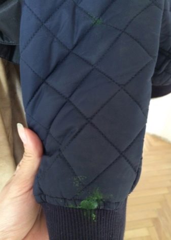 عادة ما تظهر وصمة عار من هذا الطلاء على أشياء الأطفال ، لأن الفنانين الصغار يستخدمون هذه الصبغة للرسم. لن يكون من الصعب غسل مثل هذا الشيء ، ما عليك سوى غسل الملابس في السيارة أو يدويًا مع إضافة المنظفات.