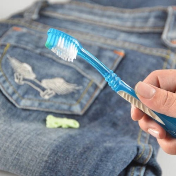 - إذا لم تكن البقعة قديمة ، فسوف تقوم بتنظيف معجون الأسنان ، والذي يتم تطبيقه على مكان التلوث. ستكون النتيجة ملحوظة في بضع دقائق.عادةً ما يتم استخدام هذه الطريقة في حالة عدم وجود أي شيء آخر في متناول اليد.