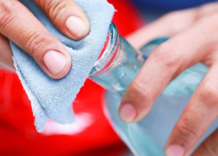 هناك طريقة أخرى لتنظيف المينا بالكحول. من الضروري تبليلها بقطعة قماش وفرك المنطقة المصابة ، ويجب أن ينفجر الطلاء.