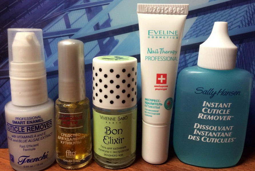 وسائل أثناء التطبيق تليين الجلد بشكل كبير حول لوحة الظفر ، وبالتالي تسهيل إزالته. أصبحت هذه التركيبات أساسًا لتصنيع الأدوات التي تسمح بإزالة بشرة بدون مقص وملاقط. اليوم ، يتم تقديم هذه المنتجات للمشترين من قبل الشركات المصنعة المحلية والأجنبية ، في ضوء أنه من المهم للغاية الحصول على الصورة الأكثر اكتمالا من أنواعها.