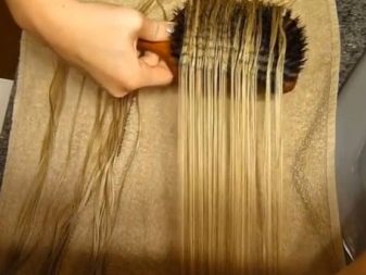 - مع مساعدة من الشباك. نحن الاحماء الأداة إلى 190 درجة. نقسم الذيل إلى عدة خيوط ونفرد كل واحد منهم على حديد الشباك عن طريق القياس مع الشعر الطبيعي. التمرير لمدة 1-2 دقائق. قم بإزالة كل حبل مجعد بعناية من مكواة الشباك واتركها تبرد.