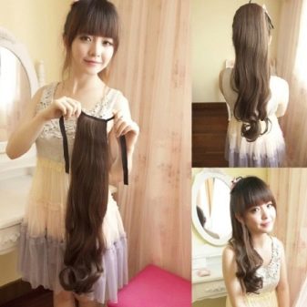 جعل ذيول كاذبة من كل الشعر الاصطناعي والطبيعي. الأولى تتميز بوزنها المنخفض ولوحة الألوان المتنوعة وبأسعار معقولة. يتراوح طولها ، كقاعدة ، بين 40 إلى 80 سم ، يختلف نسيج الشعر الصناعي: من الأشقر إلى الأسود المتموج.