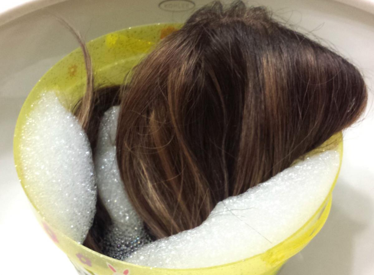 - يغمس ذيل الشعر الصناعي فيه لمدة 10 دقائق (لا أكثر).