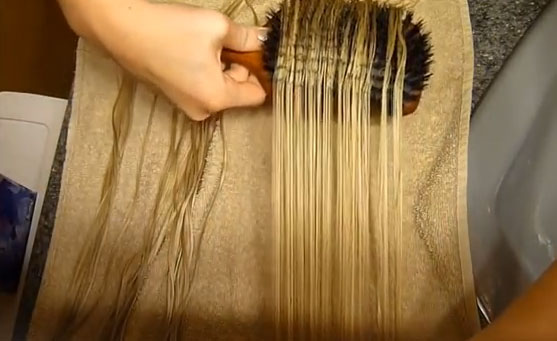 - لف في جدائل اصطناعية منشفة لبضع ثوان ، ثم تصويبها.