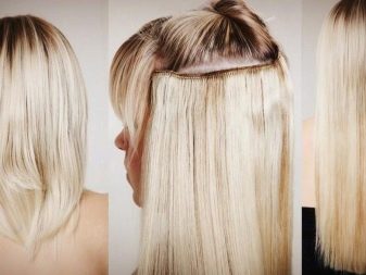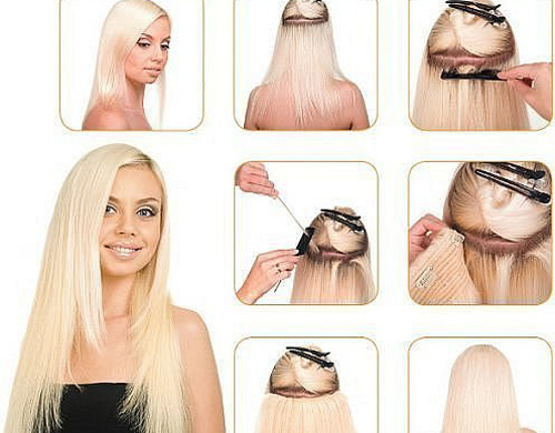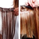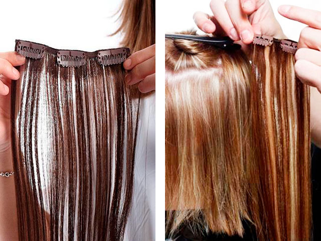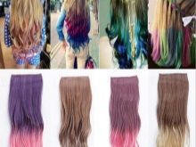 أي خيوط علوية ، أو شعر على دبابيس الشعر ، يحل محل الإجراء الممتد تمامًا ، بينما يغير المظهر أيضًا على الفور. يمكنك إرفاقها بطرق مختلفة وفي مناطق مختلفة: القذالي ، الجانب ، الانفجارات. يمكن اختيار الشعر كنغمة للون ، مع اختلاف اللون الرئيسي لإعطاء تأثير التلوين. يتم تثبيتها بطريقة بسيطة جدًا - مثبتة على سرطان البحر أو المشابك أو المشابك الصغيرة.