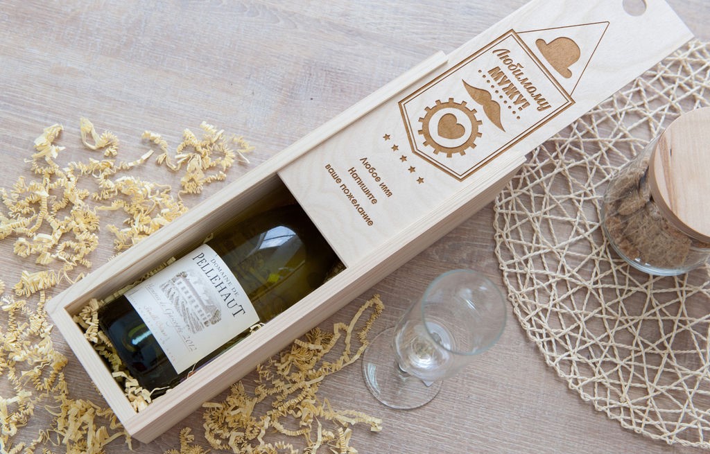 - النبيذ غالية في علبة ، مزينة نقش خاص.