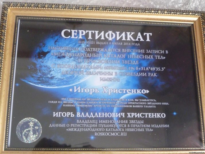 - شهادة لنجم. حتى الآن ، هذه هدية شائعة إلى حد ما. كتأكيد على تخصيص الاسم للنجم الليلي ، يتم توفير خريطة السماء الليلية مع إحداثيات النجم والمستندات المقابلة.