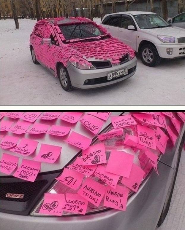 تقديم هدية ليس بالضرورة أن يكون عاديًا - تأثير كبير يجعل ظهور الأشياء غير متوقع. على سبيل المثال ، يحلم زوجك بأغطية مقاعد السيارة الجديدة. يمكنك شراء أخرى جديدة ، وطلب بديل في محطة الخدمة وقيادة السيارة سرا في المرآب. في الصباح ، للاستعداد للعمل ، سيفتح رفيقك السيارة وسيشعر بالدهشة من الصورة التي فتحت.