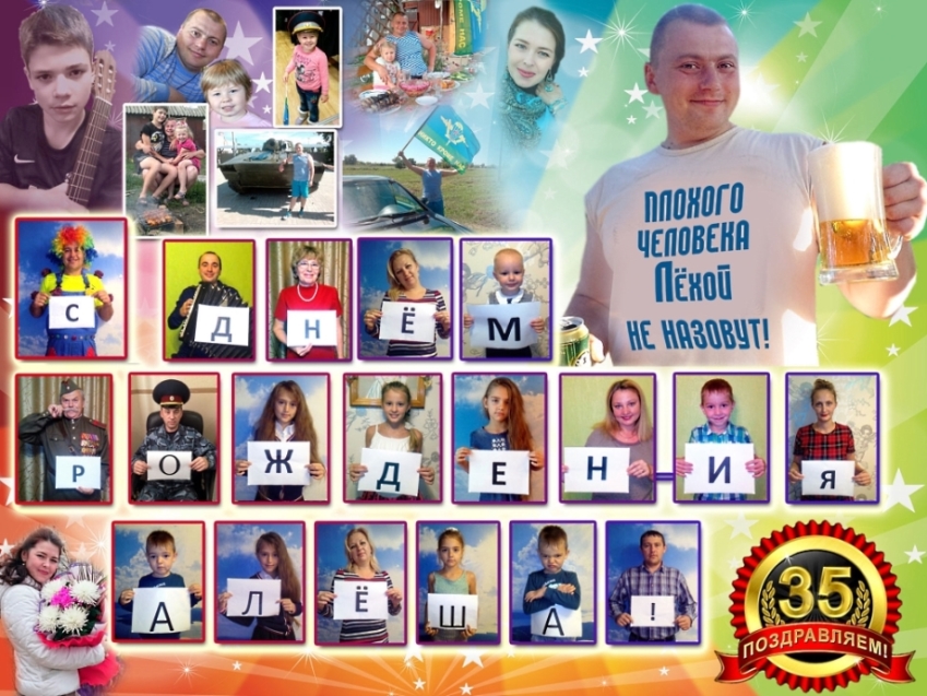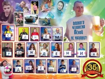 - كلية الصور مما يجعلها سهلة للغاية. اطلب من أصدقائك أو معارفك أو أقاربك التقاط صورة برسائل مطبوعة على أوراق بحجم A4. يمكن أن تكون النقوش مختلفة ، على سبيل المثال ، "عيد ميلاد سعيد!" ، "عيد ميلاد سعيد ، يا عزيزي!" وغيرها. كل خطاب تهنئة يجب أن يحتفظ به شخص واحد. ثم تحتاج إلى طباعة الصور الفوتوغرافية ، وإلصاقها على الورق الورقي بالحجم الذي تحتاجه.