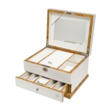 - الصناديق لتخزين مختلف تفاهات. قدمت المتاجر مجموعة متنوعة من النماذج مع وظائف مختلفة. أدراج لتخزين الخرز أو الخياطة وصناديق المجوهرات وصناديق الصور أو المستندات. تم تزيين كل منهم في الأنماط المناسبة. على سبيل المثال ، سوف تتناسب سيدة الأعمال مع صندوق خشبي صلب لتخزين السجلات. هذه تزيين حرف واحد فقط أو توفير الأقفال.