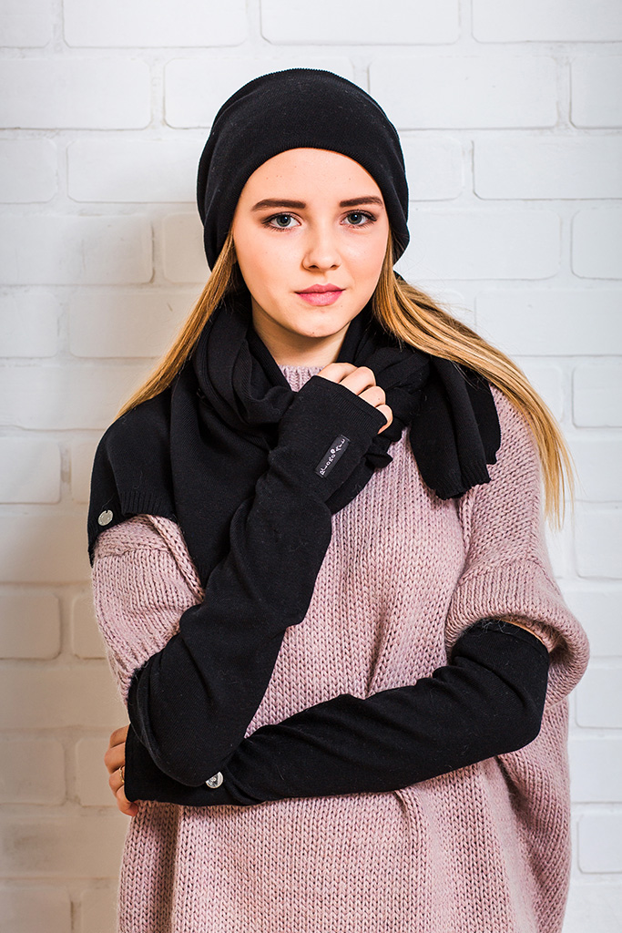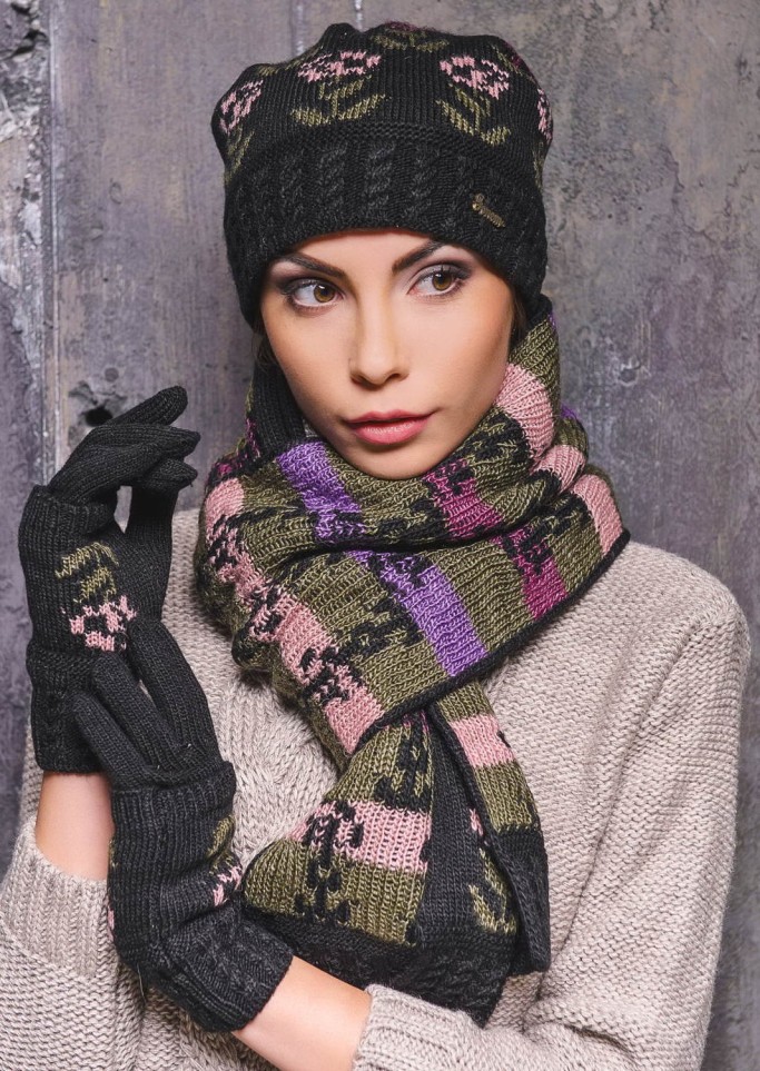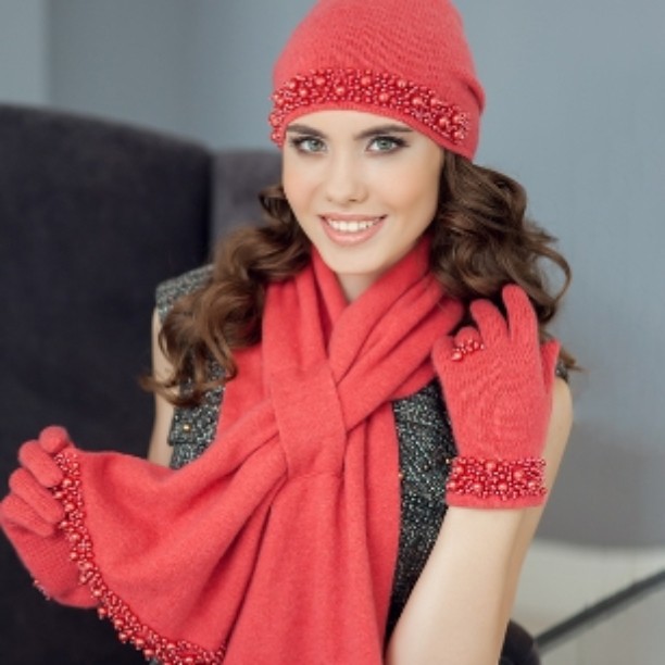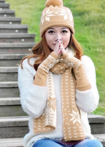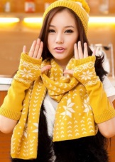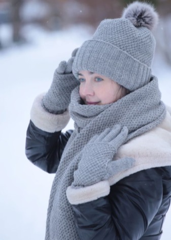 على الرغم من أن المصممون عارضوا منذ زمن طويل وجهة النظر القائلة بأن الوشاح والقفازات من المؤكد أنهما منفردين لتكرار تصميم القبعة. اليوم ، يمكن أن تكون مجموعات النساء الجاهزة من الإكسسوارات الدافئة متماثلة في الأناقة ، ولكنها تختلف في اللون والشكل. أهمية لون وشاح وقفازات مهمة إذا كانت تكملة الصورة تماما مع قبعة.