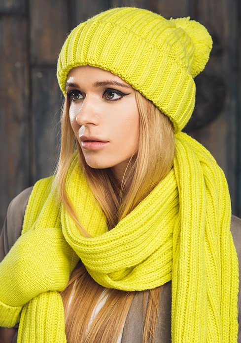 تجدر الإشارة إلى أن الشكل (النحيف والرقيق) يؤثر أيضًا على اختيار مجموعة من القبعات والوشاح. رغم أن هناك المزيد من الخيارات للجمع.