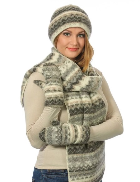 يوجد اليوم الكثير من هذه المجموعات ؛ في أي كتالوج ، عند اختيار لباس خارجي ، يتم دعوة العملاء المحتملين إلى الانتباه إلى مجموعة إضافية من القبعات والقفازات والوشاح.