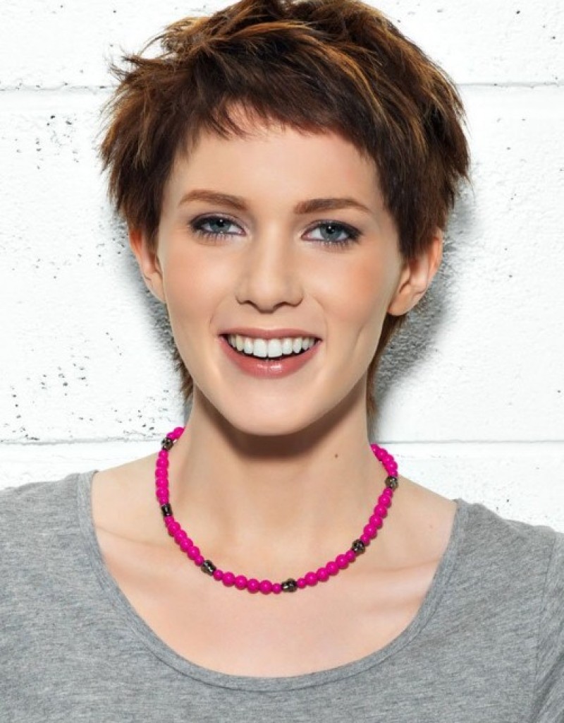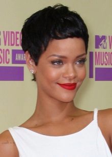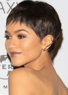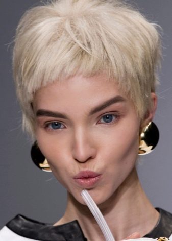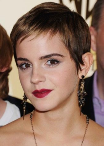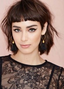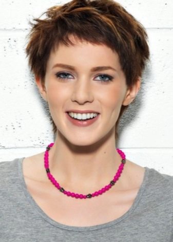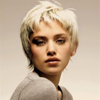 - "الجني". هذا هو قصة شعر مع الانفجارات قصيرة جدا. يتم قطع المنطقة الصدغي والقذالي أقصر قليلاً من التاج. هذا يسمح لك لجعله الحجمي وجميلة. انها مناسبة للعديد من الفتيات. بمساعدتها ، يمكنك التأكيد على الشفاه الجميلة أو العيون.