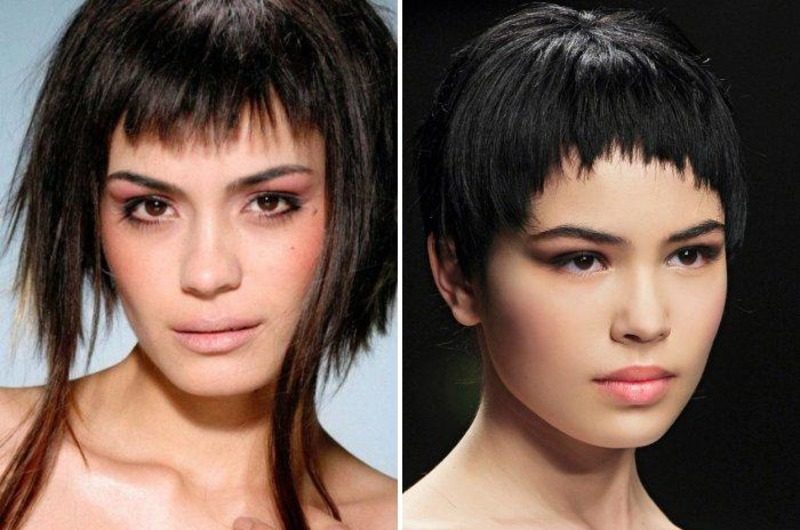 - مناسبة لجميع أنواع الشعر ، وكذلك لأي نوع من الوجه. الانفجارات غير المتكافئة. هذا فقط لا ينصح بصنع النساء بعد 40 عامًا.