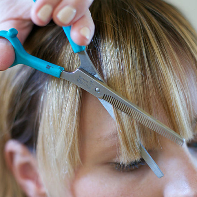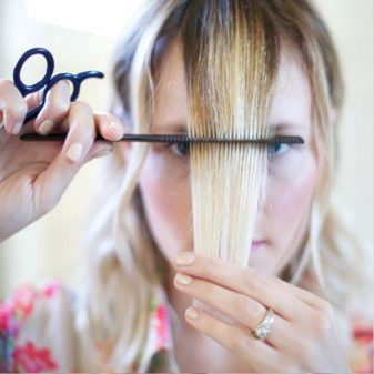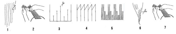 - هناك أيضًا طرق لحفظ الملفات ، والتي يتم تنفيذها حتى مع المقص العادي. على سبيل المثال ، قطع العتاد. تغادر من أطراف 1.5 سم وخفض الطول المحدد تحت المنحدر. ثم تمشيط الشعر.