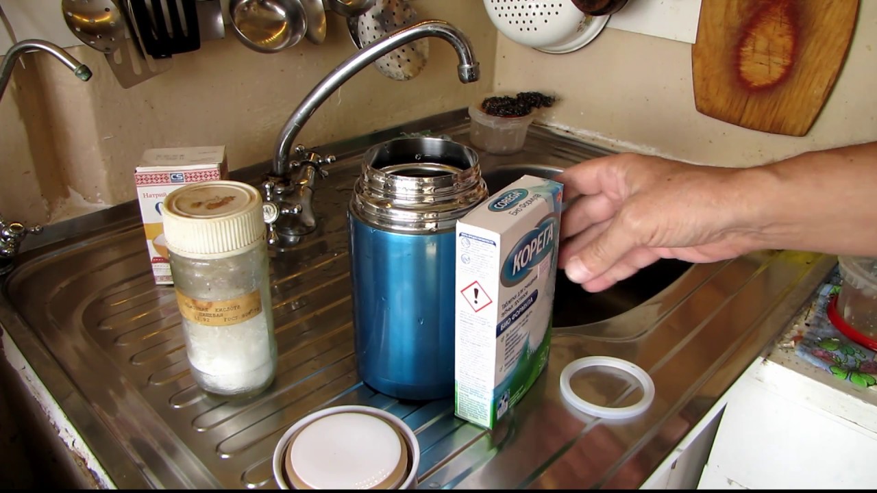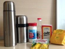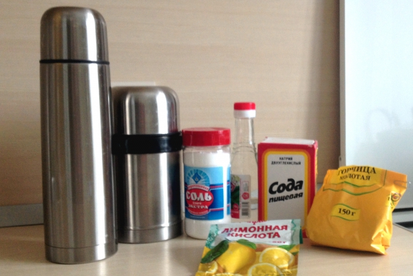 - يتم تخفيف 100 جرام من الصودا العادية مع بيروكسيد الهيدروجين إلى ملاط. يفرك هذا التكوين على الترمس من الداخل والخارج ويترك لبعض الوقت. بعد الغسيل الشامل ، لن تبقى أي آثار للدهون ، وكذلك الرائحة.
