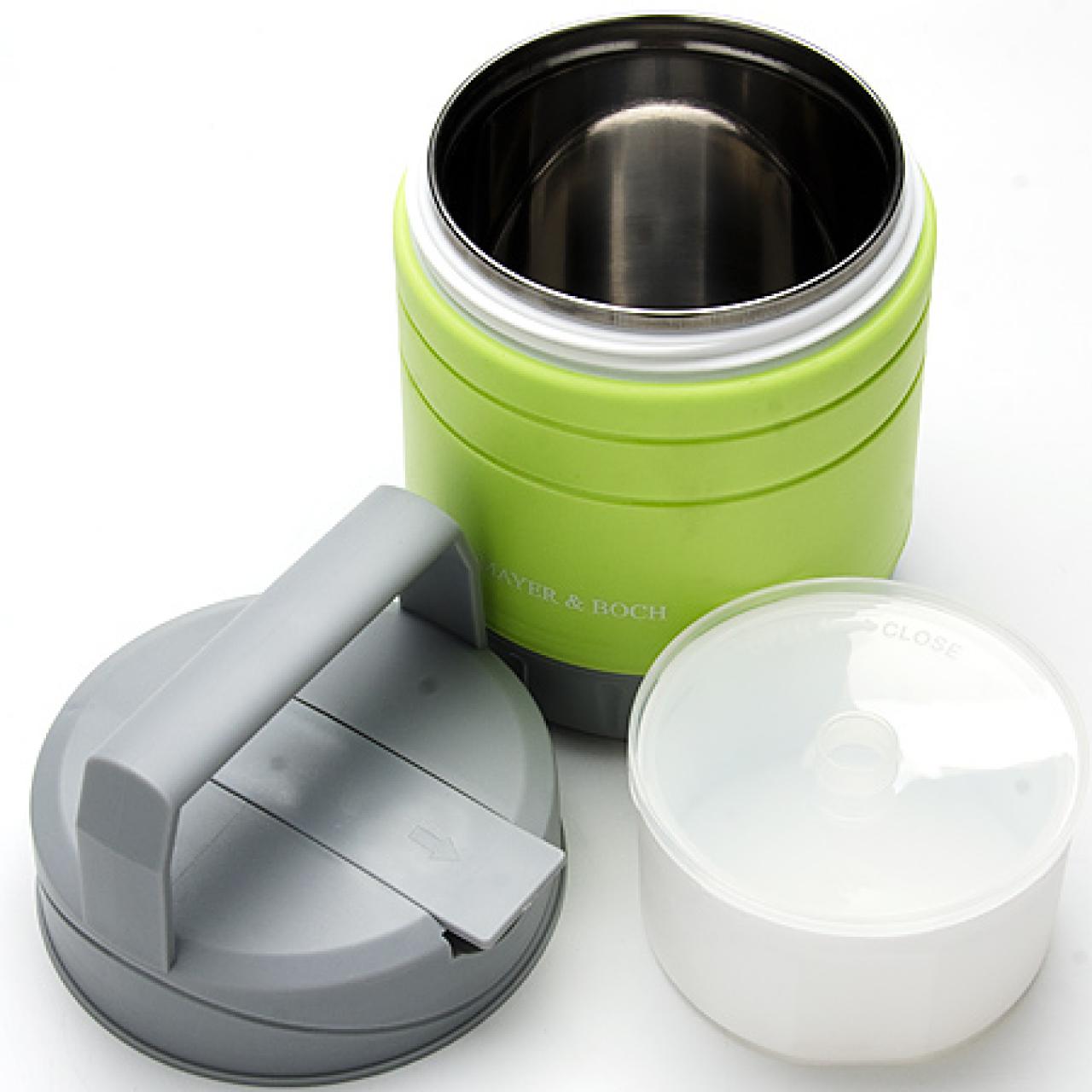 - يتكون ترمس الطعام الفولاذ المقاوم للصدأ من عدة أوعية ، مكدسة فوق بعضها البعض ، وتشبه المزيد من الأطباق ، وبالتالي ، فمن الأسهل بكثير غسلها.