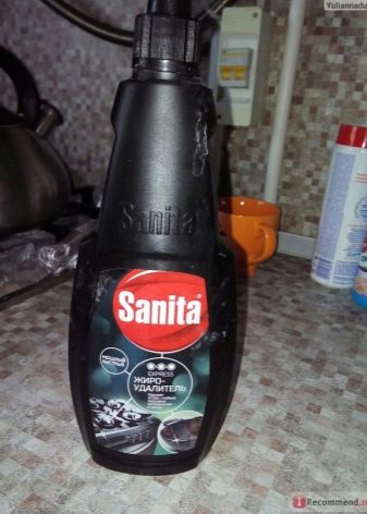تساعد المنظفات أيضًا في تنظيف الدهون (على سبيل المثال ، Domestos ، Cilit Beng ، Schumannite وغيرها). لكن الطريقة الكيميائية ليست هي الأفضل. بعد كل شيء ، فإن المكونات العدوانية التي تشكل المكون تقوم بعمل ممتاز مع الملوثات الدهنية ، لكنها لا تملك أفضل تأثير على جسم الإنسان. لا ينصح باستخدامها بدون قفازات مطاطية وقناع واقٍ ، وبعد غسل الغطاء سوف تحتاج إلى تهوية الغرفة بالكامل.