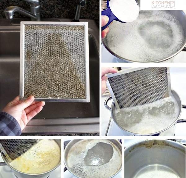 - المياه الغازية. لهذا سوف تحتاج أطباق واسعة. تُسكب كمية صغيرة من السائل فيها وتُحرق على النار وتُغلى. يضاف صودا الخبز إلى الماء المغلي (حوالي 250 غرام من الصودا إلى 10 لترات من السائل). ثم وضعوا المشابك والتصفية في المقلاة ، وجعل النار أبطأ وترك على النار لمدة 30-40 دقيقة أخرى. وهكذا ، يذوب الدهون تدريجيا.بعد فترة من الوقت ، أخرج المصفاة بالفلتر واغسلها تحت الماء في درجة حرارة الغرفة. يمكن إزالة التلوث المتبقي في الأماكن التي يتعذر الوصول إليها من خلال قطعة قطن.