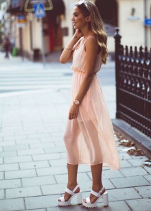 Les filles avec les jambes pleines ne devraient pas porter des sandales sur la plate-forme. Dans de telles chaussures, les jambes semblent lourdes. Il vaut mieux donner la préférence au talon.