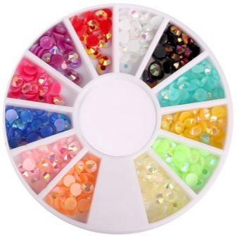 La forme des strass décoratifs peut être différente. Une option classique est considérée comme un bijou rond. Après tout, ils pourront s'intégrer dans presque tous les modèles.