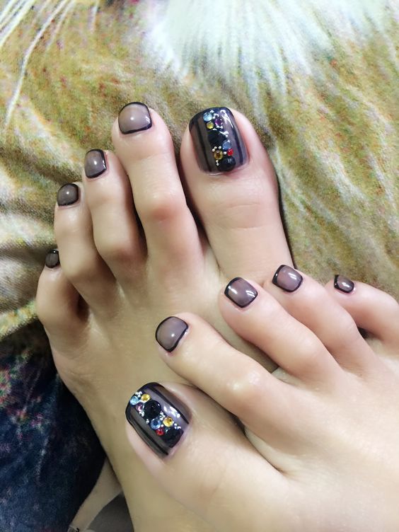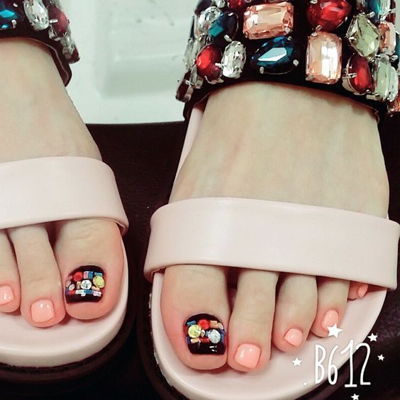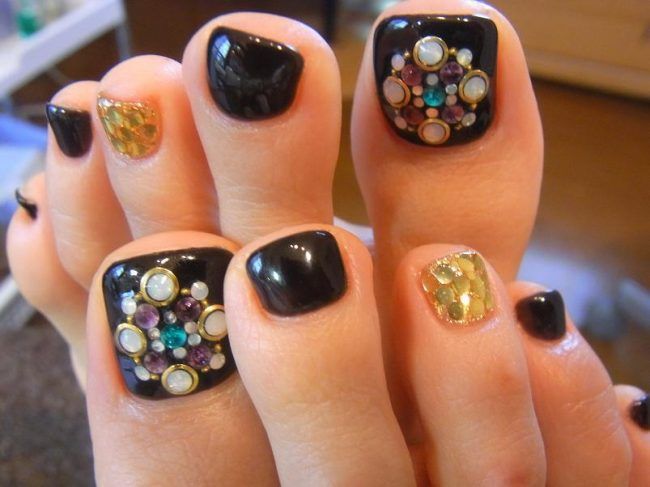 Aujourd'hui, de nombreux concepteurs réalisent différentes expériences lors d'une pédicure. Certains conseillent donc de recouvrir le pouce de grosses pierres de différentes couleurs et de différentes formes.