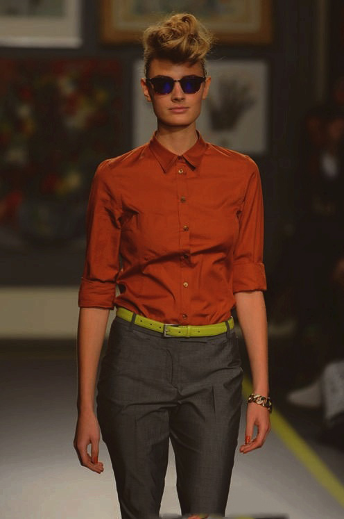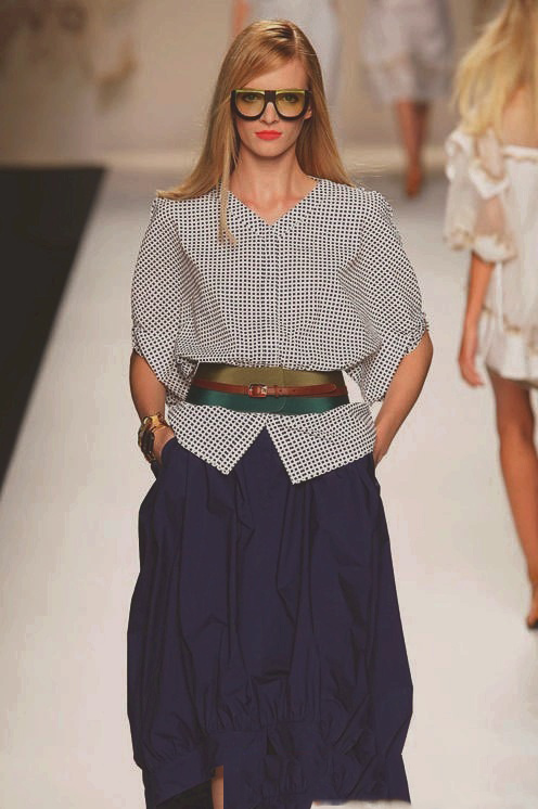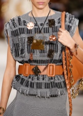Brand Miu Miu, especially popular among young people, introduced a line of leather belts coarse masculine style with a simple buckle. Although these models look rather brutal, they make up an organic ensemble with delicate airy dresses.