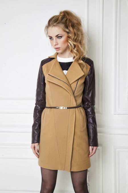 Belt leather belts can even outerwear. Especially feminine accessories look with a coat. The color of the belt in this image can be matched to the clothes - then it will serve specifically to denote the waist, or stand out against the background of a general gamut.