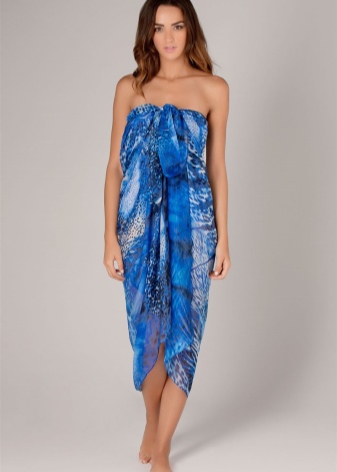 Some of the styles look like a traditional pareo, the birthplace of which is the island of Tahiti. Other models look like dresses on the figure, because they are made with straps at the ends of the cloth, the shoulder strap on the right side leans on the left shoulder and vice versa. In this case, the back remains practically open, and the bath dress becomes very similar to an elegant evening dress.