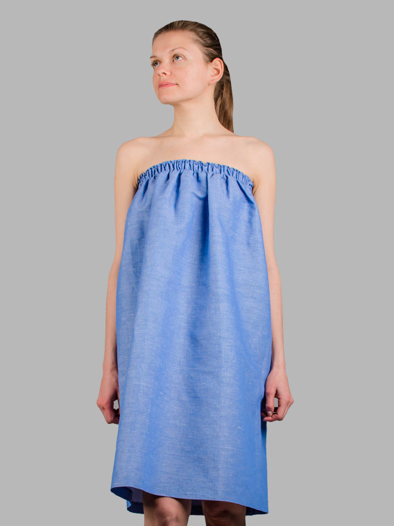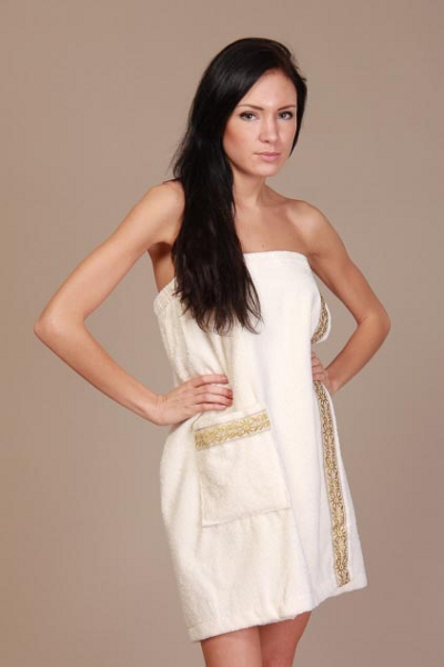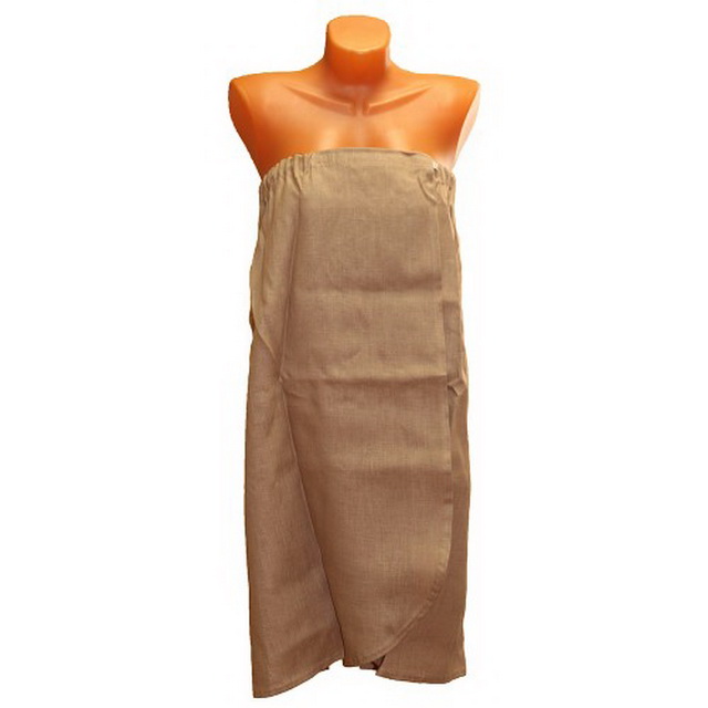 Bath dress-towels are made from linen fabric.It is considered the most durable and wear-resistant among natural fabrics, it also has excellent breathability (allows the body to breathe) and is very durable, while it does not require special care. Moisture evaporates from it faster than from other types of fabrics, so it is very comfortable to wear clothes made from flax in the heat - you can not be afraid of overheating, and for a bath a linen dress-towel fits very well.