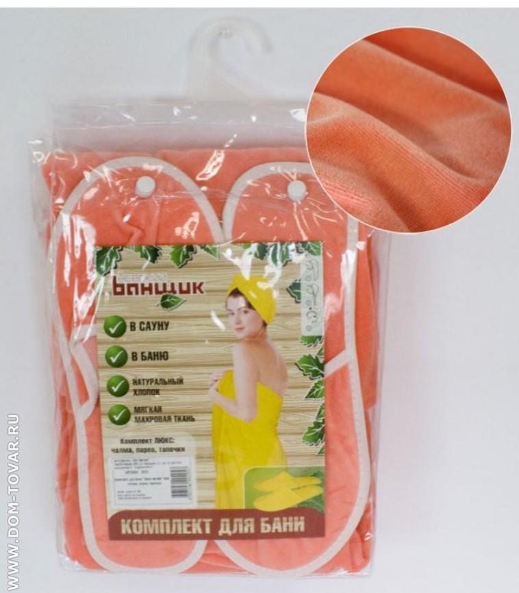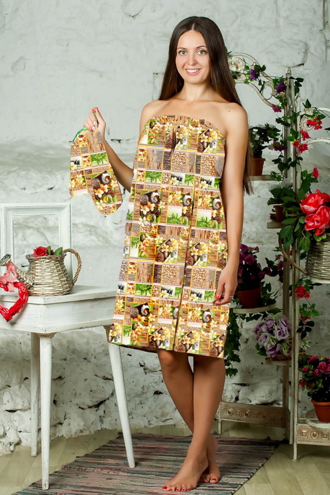 Pareos for baths and saunas are often sold complete with “turban” and a towel. These things are made from the same fabric and match in color, pattern and design, which allows you to create an image in the same style and mood.