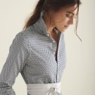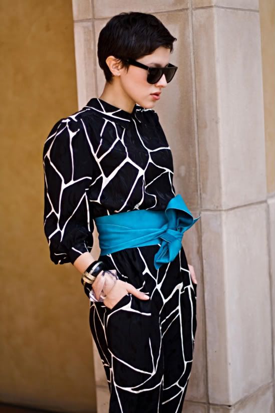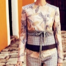 - The fashionable thing can be not only monophonic, but also added with various prints. It can be geometric shapes, patterned lines, flowers and other beautiful compositions. But they should be chosen very carefully, so as not to create an absurd and too fanciful image.