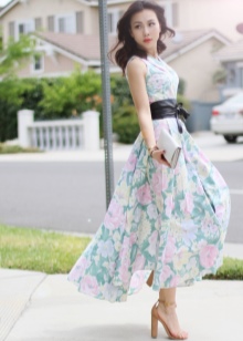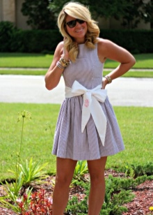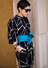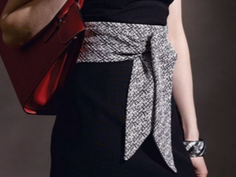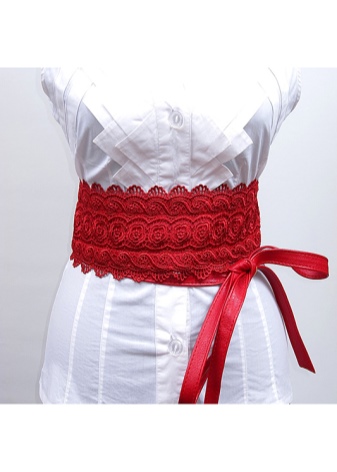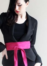 A very feminine and elegant belt looks on dresses. On the background of such a product, extra kilograms and ugly parts of the figure will easily disappear. But when choosing a sash, it is necessary to give preference to contrasting options that will not merge with the dress. For example, a classic black outfit can be complemented with a bright red, pink or magenta product.