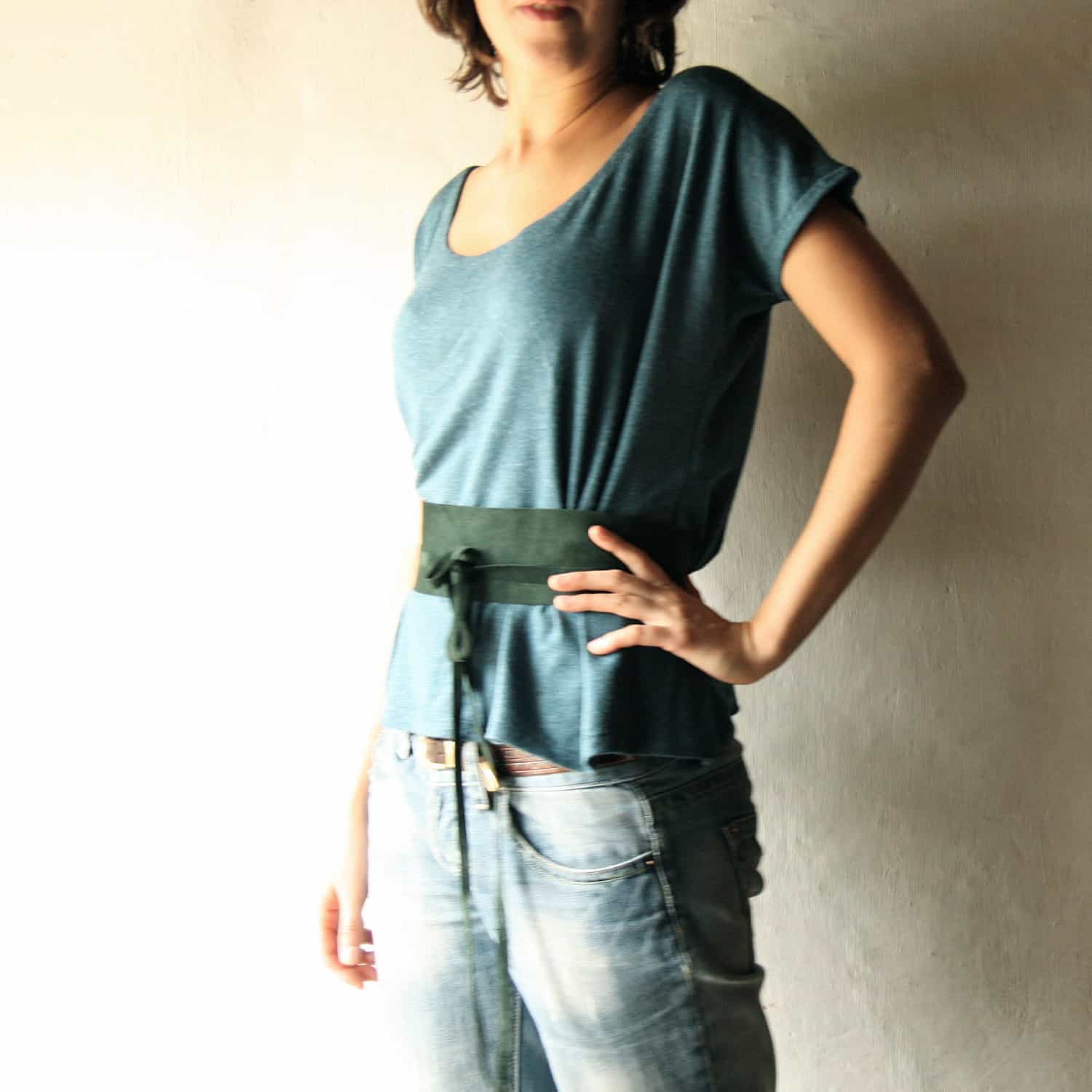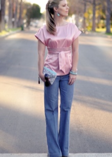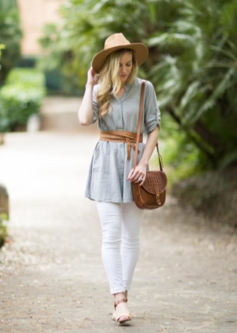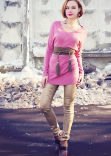 Women's belt looks great with long tunics or free-cut T-shirts. Such clothes do not emphasize the figure, but with the help of a sash it can be fixed.
