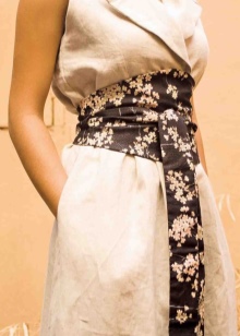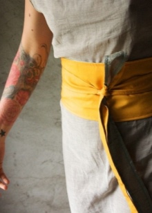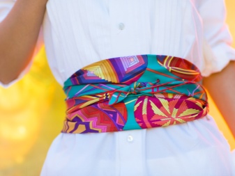 The stylish belt is a long and wide band of leather or other durable material with two ends. There are no buckles in it, as they are simply not needed. Sash can be tied at the waist in all possible ways and create beautiful bows or knots. With the help of such a little thing you can constantly update and change your images.
